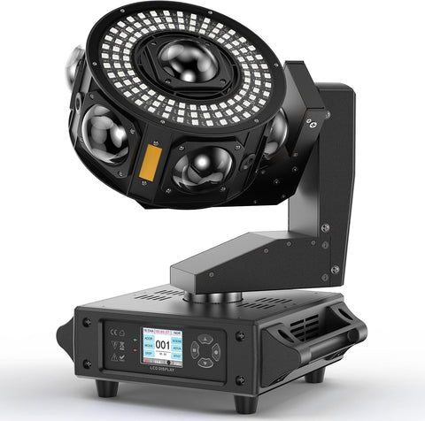 De moving head beschikt over 7 krachtige RGBW LED’s als hoofdbundel voor een scherpe, heldere lichtstraal. Daarnaast zorgen de geïntegreerde rode, groene en blauwe lasers, de LED-ring met 108 RGB LEDs rondom de lens en 3 gele stroboscooplichten voor extra visuele impact en variatie in de show.