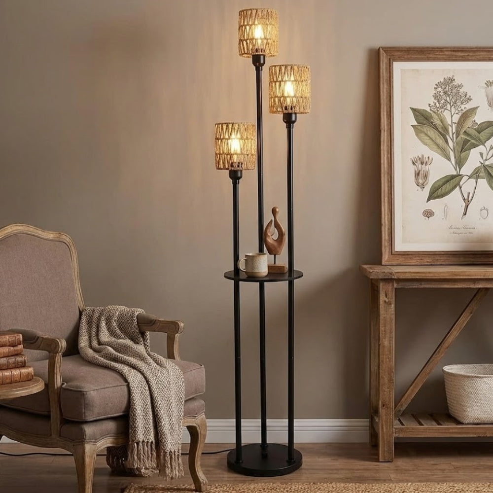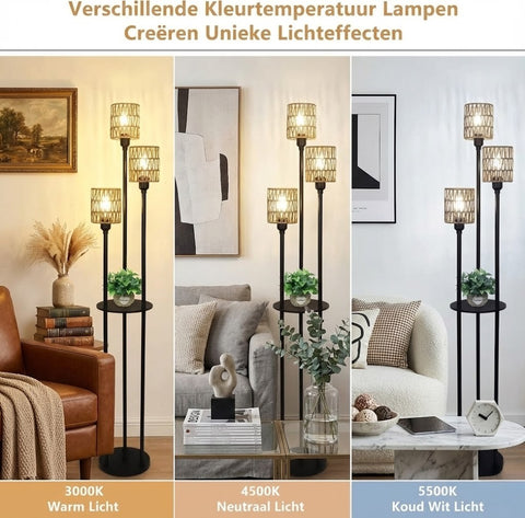 Slim 2-in-1 Ontwerp: Deze lamp is voorzien van een handig houten plankje (bijzettafeltje). Ideaal om je telefoon, een kop koffie, je favoriete boek of een mooie plant op te zetten. Een perfecte ruimtebesparende oplossing voor naast de bank of in een leeshoek.